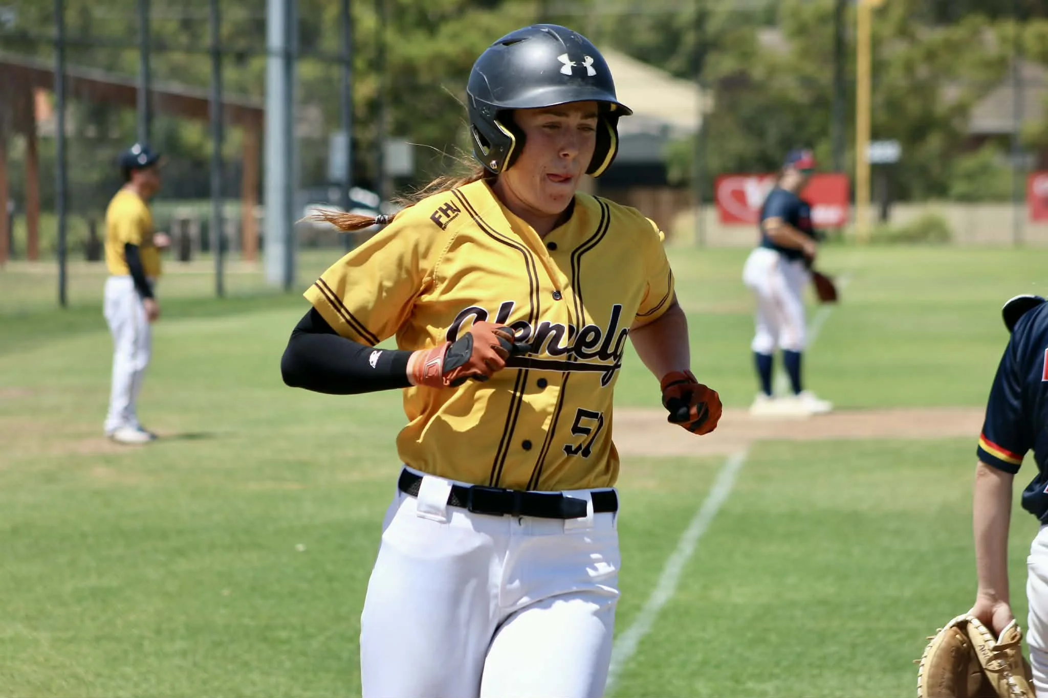 Glenelg's Georgia Kaluza – pictured – took two walks, stole two bases, and hit a double (4). For Adelaide, Sophie Fuchs went 2-for-2 with two RBIs and brought in the tying run.
