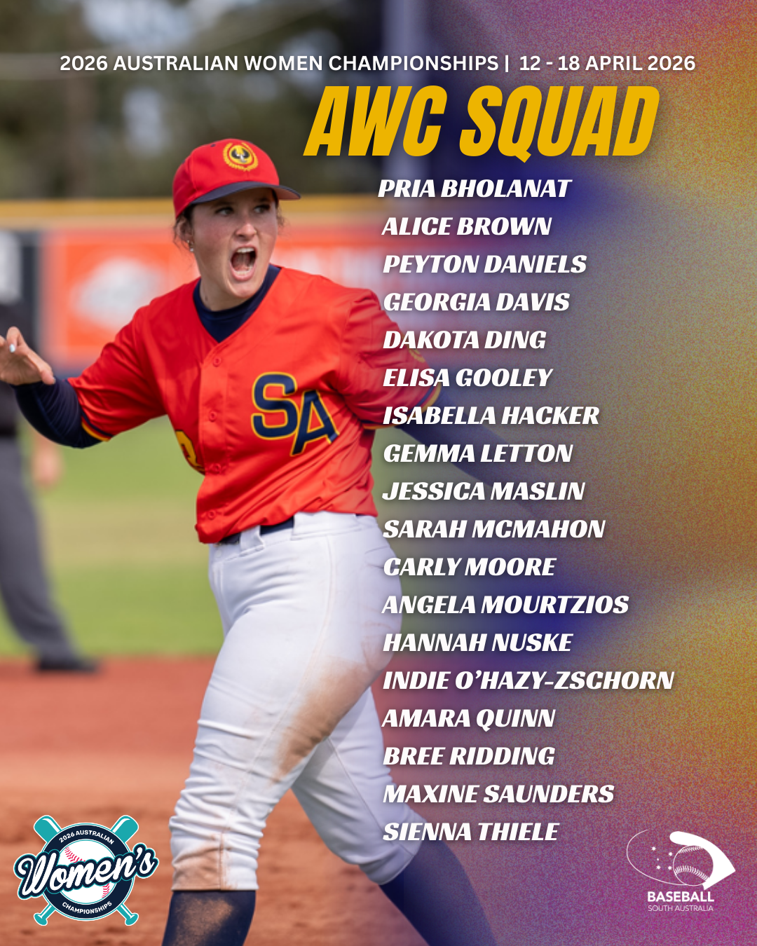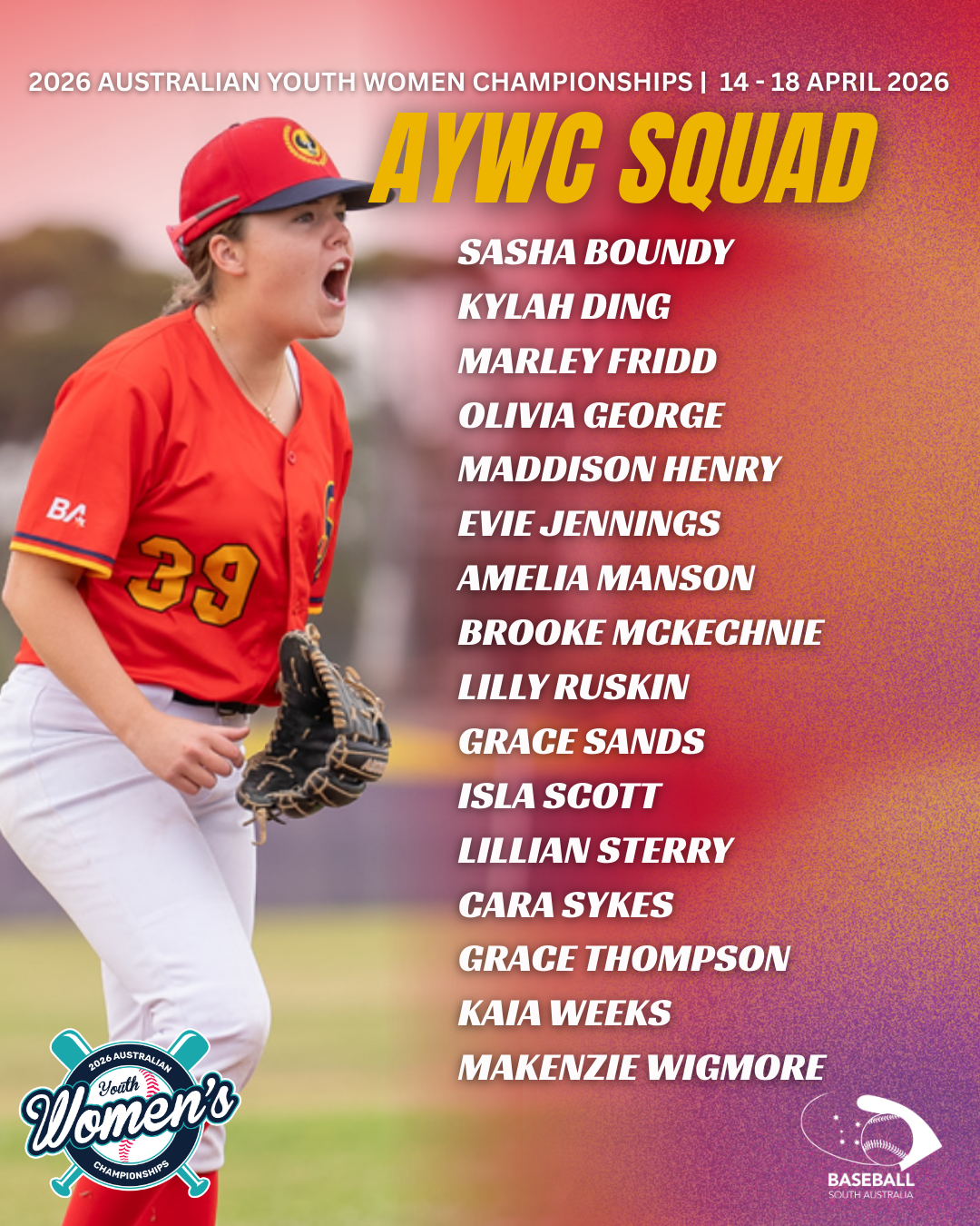 Baseball South Australia is proud to announce the Youth and Open Women’s South Australian State Teams selected to compete at the 2026 Australian Women’s Championships (AWC) and Australian Youth Women’s Championships (AYWC), to be held in Melbourne from 12–18 April 2026.